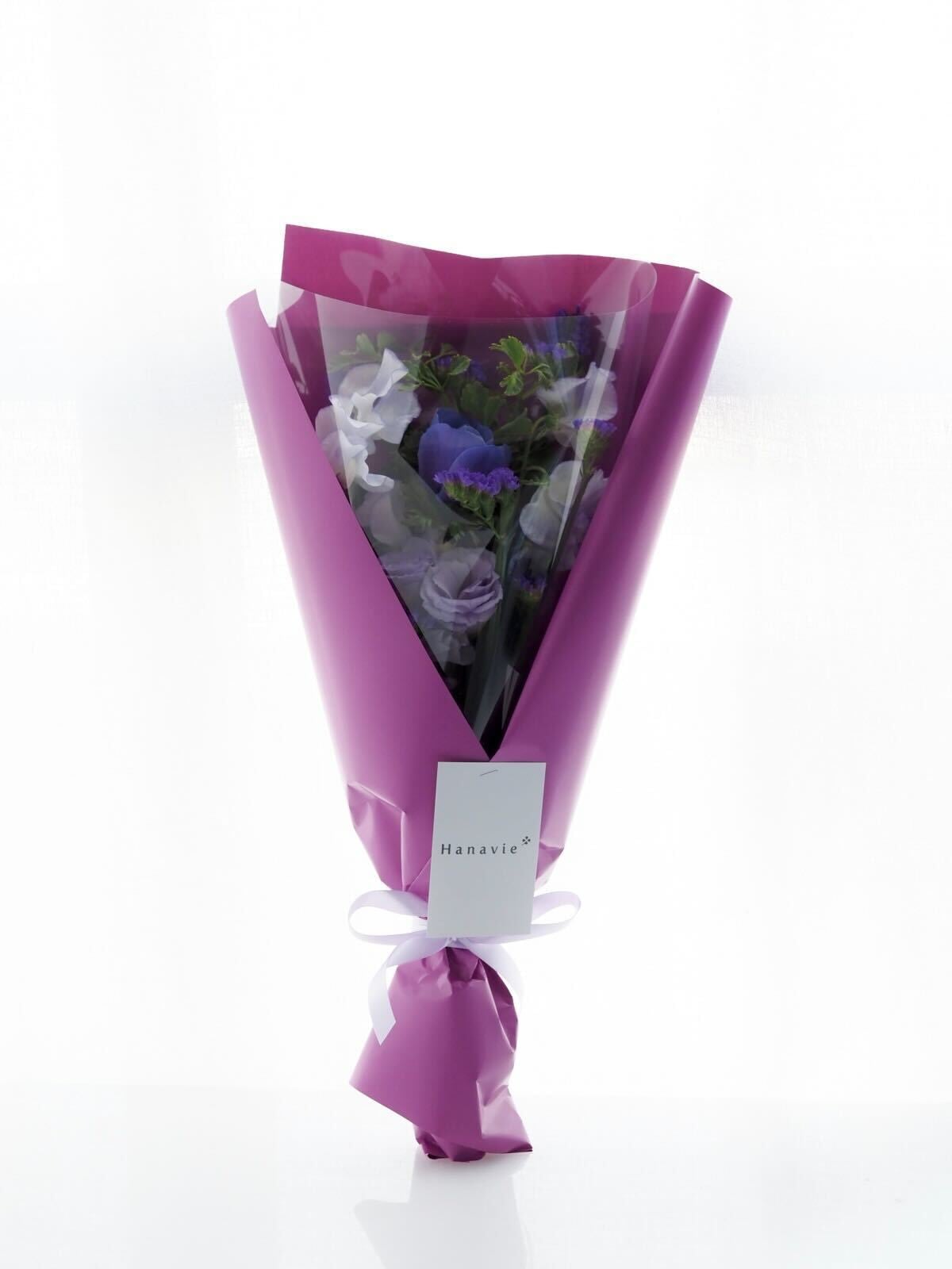 お花もラッピングも、色にこだわった「推し色ブーケ」です。